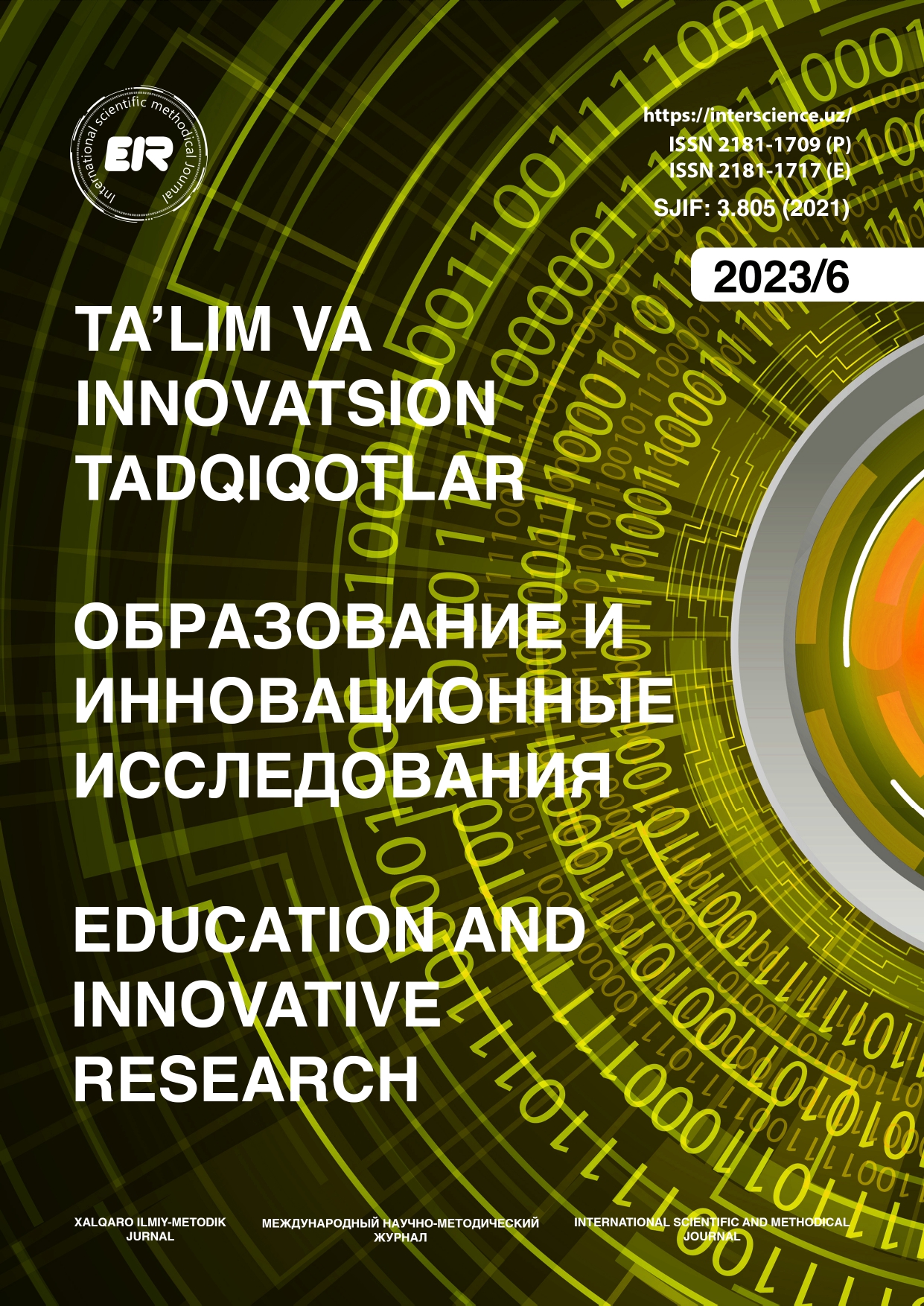 № 6 (2022)Таълим ва инновацион тадқиқотлар халқаро илмий-методик журналининг 2022 йил июнь сони (6-сон) DOI: 10.53885/edinres.2022.28.51.001