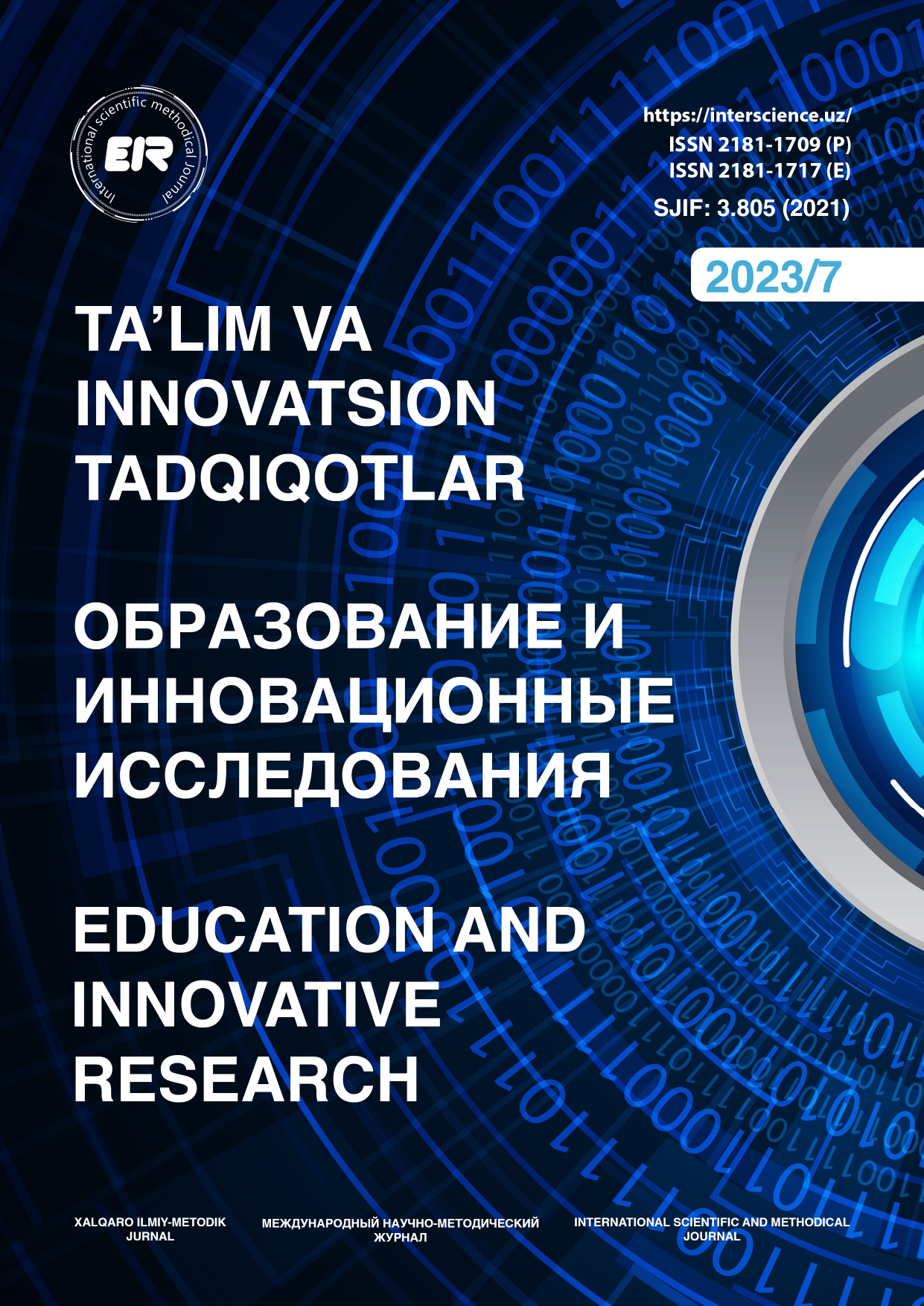 № 7 (2022)Таълим ва инновацион тадқиқотлар халқаро илмий-методик журналининг 2022 йил (июль) 7-сони.